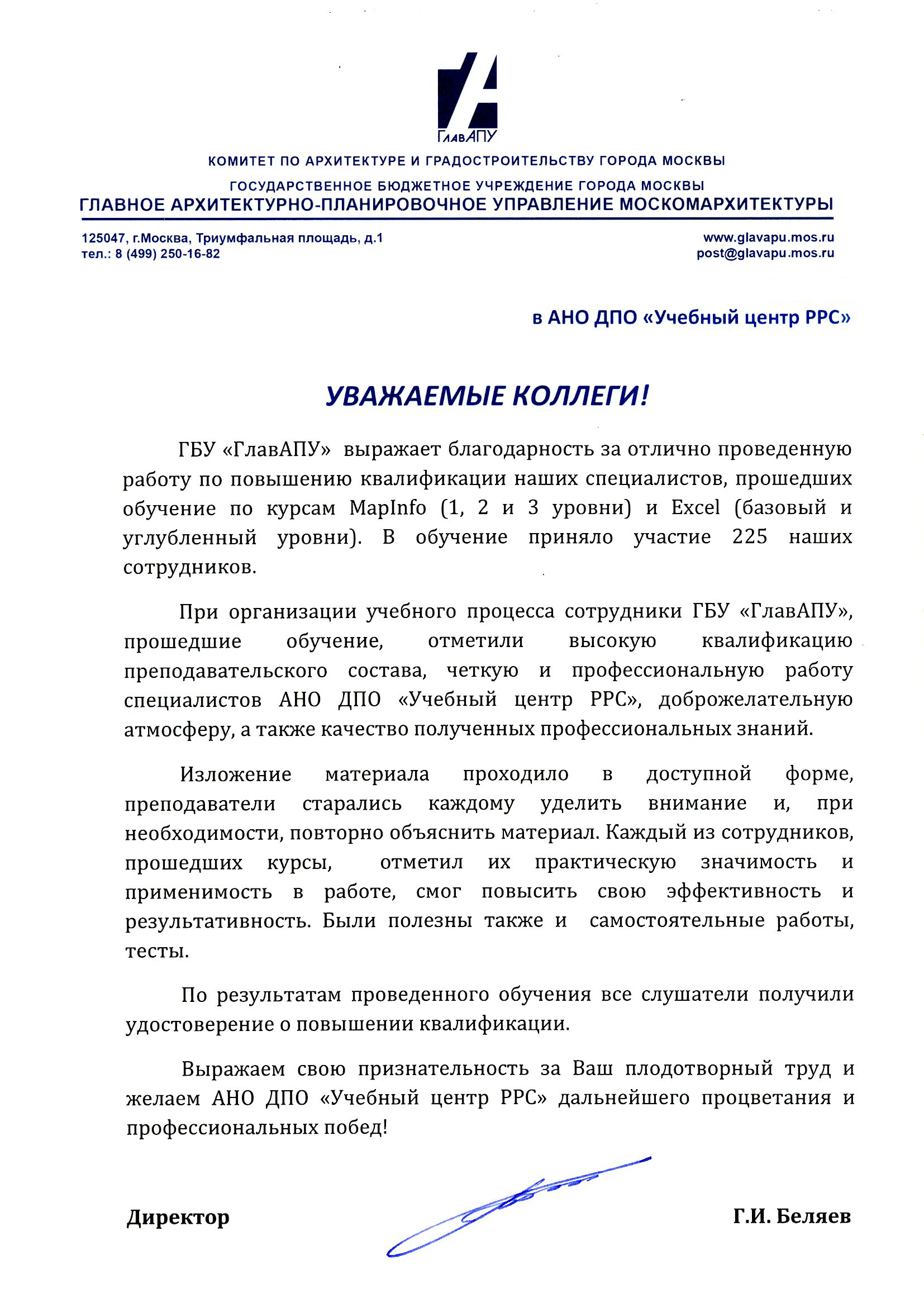 Си Ай Скул » Отзывы наших клиентов » Главное архитектурно-планировочное управление Москомархитектуры