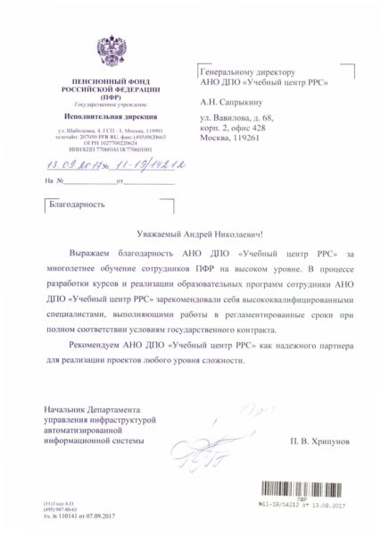 Си Ай Скул » Отзывы наших клиентов » Пенсионный фонд Российской Федерации